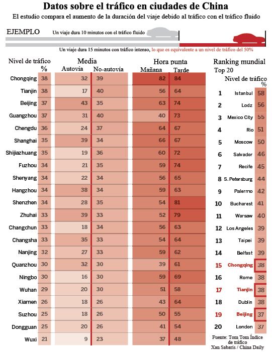 Chen Yanyan, profesor en el Centro de Investigación de Transporte en la Universidad de Tecnología de Pekín, dijo, "En los últimos a?os, el aumento de vehículos ha superado con creces la velocidad de desarrollo de la infraestructura para el transporte de muchas ciudades chinas, lo que ha provocado un empeoramiento del tráfico urbano".