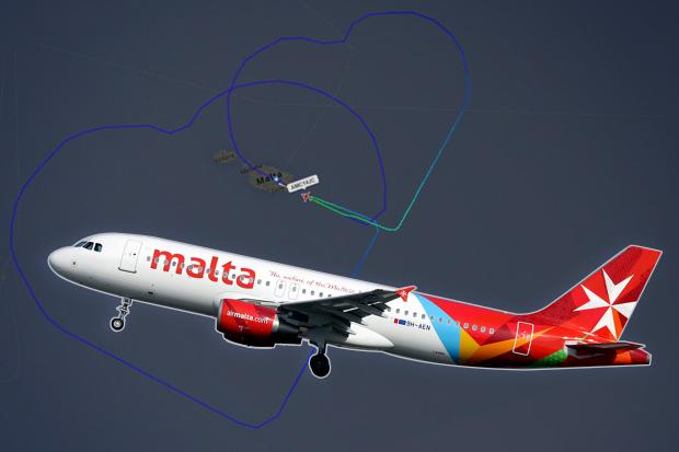 Lucas,16/04/2015(El Pueblo en Línea)-El servicio FlightRadar ha registrado un insólito vuelo sobre el Mediterráneo. Un avión Airbus A319 de Air Malta circunvoló el archipiélago maltés siguiendo una curva similar a un corazón y luego repitió el mismo truco un poco más al noreste, de tal manera que las dos figuras de corazones se cruzaran.