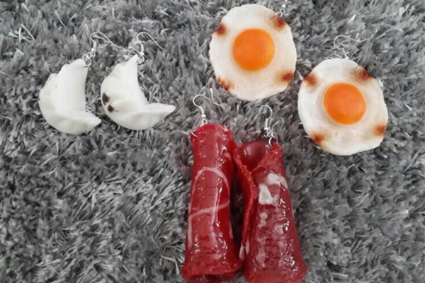 Pendientes "Deliciosos". Ahora es tu oportunidad de decorar tus orejas con tu comida favorita. La tienda ofrece pendientes con forma de dumplings, huevos fritos o bacon. [Foto/Taobao.com]