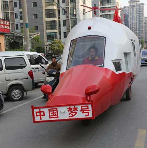 Zheng zhou, 23/04/2015(El Pueblo en Línea)-Yuan Jingying, un ingeniero aeronáutico jubilado de Zhengzhou, provincia de Henan, ha tardado cinco a?os en construir una réplica hecha a mano de un helicóptero, con la esperanza de usarlo para llevar a su nieto a la escuela y viajar con la madre del ni?o por China.