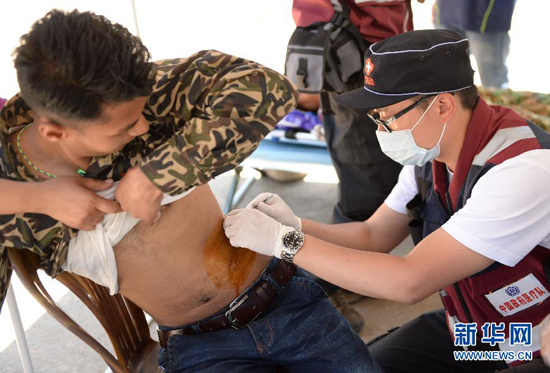 Un día después del terremoto, la Comisión Nacional de Salud y Planificación Familiar formó el primer equipo médico chino, y el día 29 envió a un equipo de prevención de epidemias. La principal tarea del primer equipo es rescatar, y la del segundo es la prevención de epidemias post-desastre. Además, un equipo médico chino permanente en Nepal cuenta con 17 médicos, y todos se volcaron en las labores de ayuda el mismo día del terremoto. Hasta el día 6 y durante diez días, estos equipos médicos se han coordinado con las autoridades de Nepal en las labores de ayuda humanitaria.