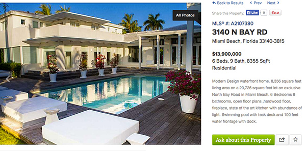 El precio del inmueble, que tiene siete habitaciones y ocho ba?os, además de una gran piscina y un embarcadero propio ronda los 14 millones de dólares.