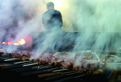 El denso humo envuelve a un asador popular, en la ciudad de Qingdao, provincia de Shandong. La prohibición de los asadores al aire libre es uno de los esfuerzos de Pekín para mejorar la calidad del aire. [Foto: PPC]