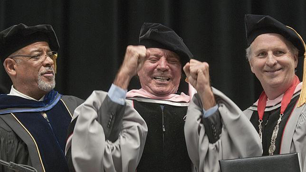 El artista, de 71 a?os, recibió anoche este reconocimiento en la ceremonia de graduación del centro universitario, ataviado con toga y birrete como un estudiante más, junto a 900 jóvenes de 62 países.