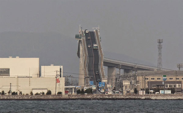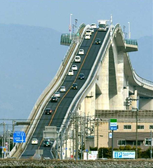 Tokio,18/05/2015(El Pueblo en Línea)-El increíble puente Eshima Ohashi en Japón, el tercero más grande del mundo, parece tener una extraordinaria inclinación por ambos lados, con el objetivo de facilidad la navegación de los buques que pasan por debajo.