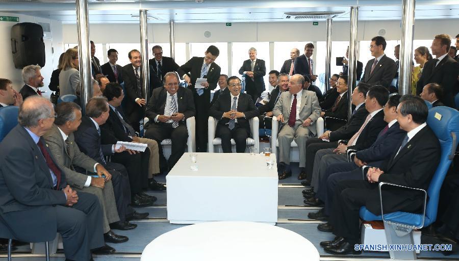 Tras su viaje en el transbordador, Li conversó con representantes de los sectores manufacturero y financiero de China y Brasil. En esta ocasión, pidió a las instituciones financieras que apoyen la cooperación bilateral en capacidad productiva.