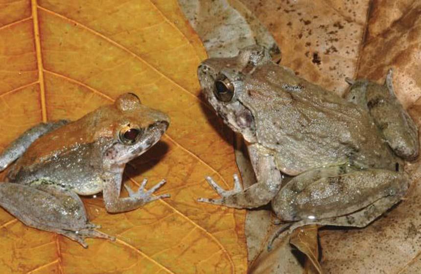 8 Limnonectes larvaepartus: Es una excepción en la reproducción de las ranas, no pone huevos, sino que pare a los renacuajos y los deposita en los charcos de agua. Menos de una docena de las 6,455 especies de ranas del mundo tienen fecundación interna y todas, salvo esta ponen huevos fertilizados o paren a peque?as ranitas. Se halló en Célebes (Indonesia) y mide 4 cm.