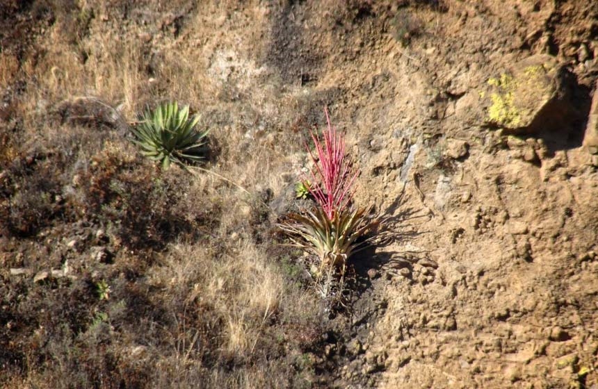 9 Tillandsia religiosa: Conocida por los habitantes de la Sierra de Tepoztlán (México), que la usan para decorar los altares navide?os. Esta planta, recién descubierta para la ciencia, llega a medir metro y medio, florece entre diciembre y marzo, y crece aislada en zonas rocosas de 1,800 a 2,100 metros de altitud.