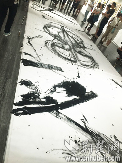 Wuhan,27/05/2015(El Pueblo en Línea)-Una artista pinta usando su cuerpo en una exposición en Wuhan, provincia de Hubei, el 22 de mayo de 2015.