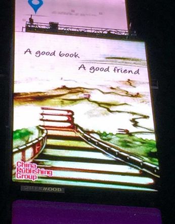 Es la primera vez que una empresa editorial de China se promociona en una gran pantalla de Times Square, y también es el primer estreno del arte de la pintura en arena en la plaza. A través de la pantalla de 240 metros cuadrados, la más grande para publicidad del mundo, se puede ver la influencia del grupo editorial y la competitividad internacional de la industria editorial china. Este también será uno de los temas más hablados en la Feria de Libro 2015 celebrada en EE.UU.