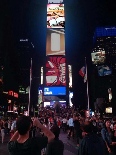 Es la primera vez que una empresa editorial de China se promociona en una gran pantalla de Times Square, y también es el primer estreno del arte de la pintura en arena en la plaza. A través de la pantalla de 240 metros cuadrados, la más grande para publicidad del mundo, se puede ver la influencia del grupo editorial y la competitividad internacional de la industria editorial china. Este también será uno de los temas más hablados en la Feria de Libro 2015 celebrada en EE.UU.
