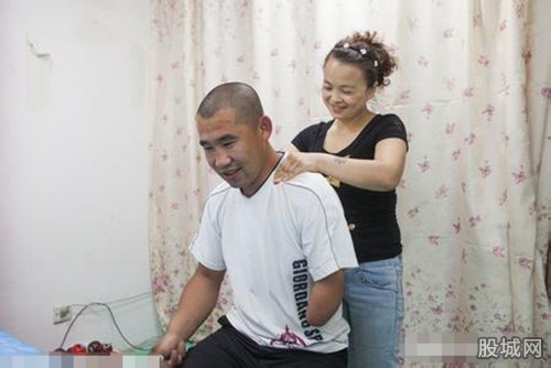 La esposa de Xing le da un masaje tras un día agotador de trabajo que a veces se alarga hasta la medianoche.