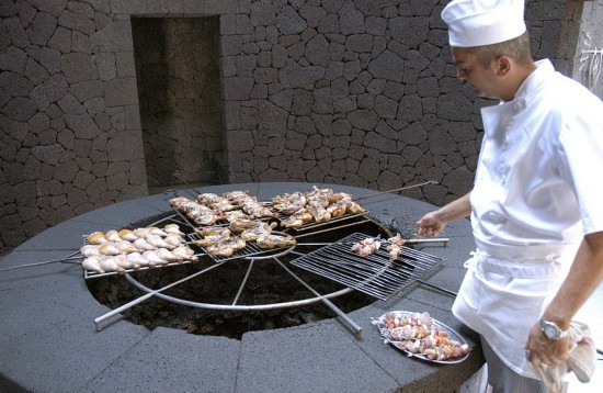 Delicias en la boca del volcán: restaurante espa?ol cocina sus platos con calor de la tierra.