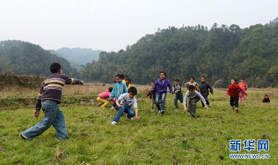 Ni?os juegan "pueblo de madera" en una zona rural de la región de Zhaoping, en Guangxi Zhuang. (Foto: Liu Fei)