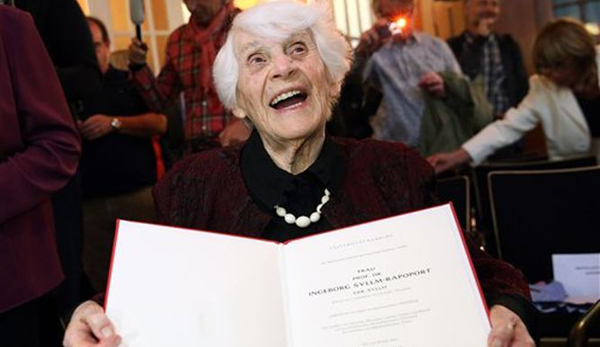 BERLíN,10/06/2015(El Pueblo en Línea)-La pediatra alemana Ingeborg Syllm-Rapoport, de 102 a?os, recibió oficialmente ayer el diploma de doctorado del cual había sido privada en 1938 por los nazis a causa de sus orígenes judíos, según la clínica universitaria de Hamburgo. Según el centro educativo, Syllm-Rapoport es ?probablemente la más anciana del mundo? en recibir un título como este.