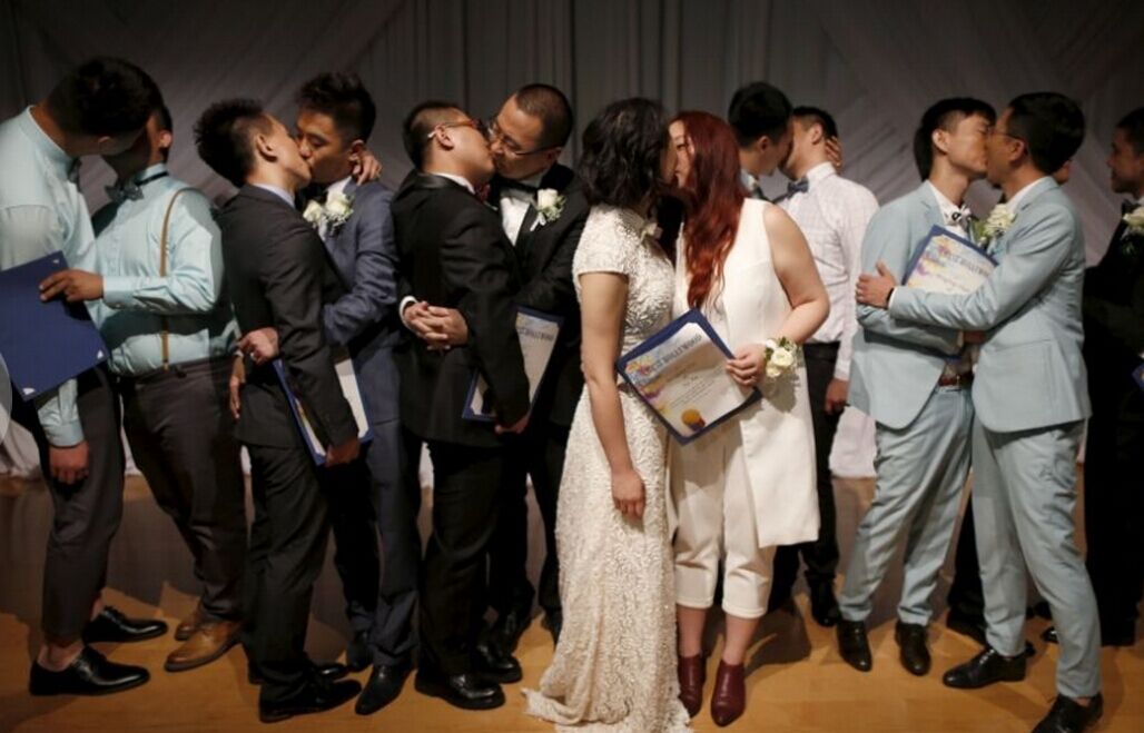 7 parejas homosexuales chinas celebran su matrimonio en West Hollywood