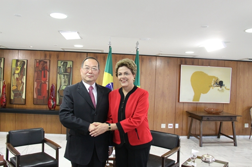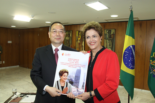 La presidente de Brasil, Dilma Rousseff, se reunió con la delegación de Diario del Pueblo encabezada por el presidente del Grupo, Yang Zhenwu en el Palacio Presidencial, y recibió una entrevista exclusiva.
