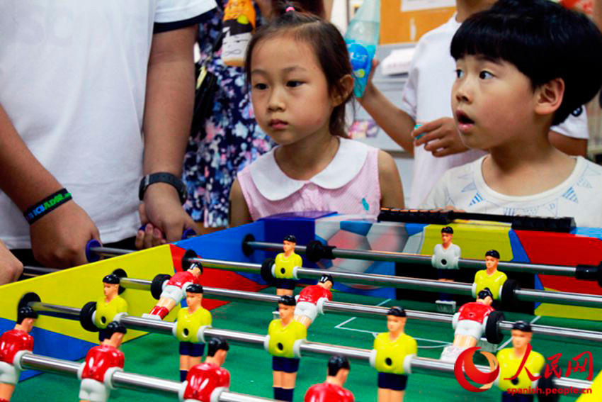 Los peque?os, en la biblioteca del Instituto Cervantes, disfrutaron del entretenido Futbolín del Ecuador.