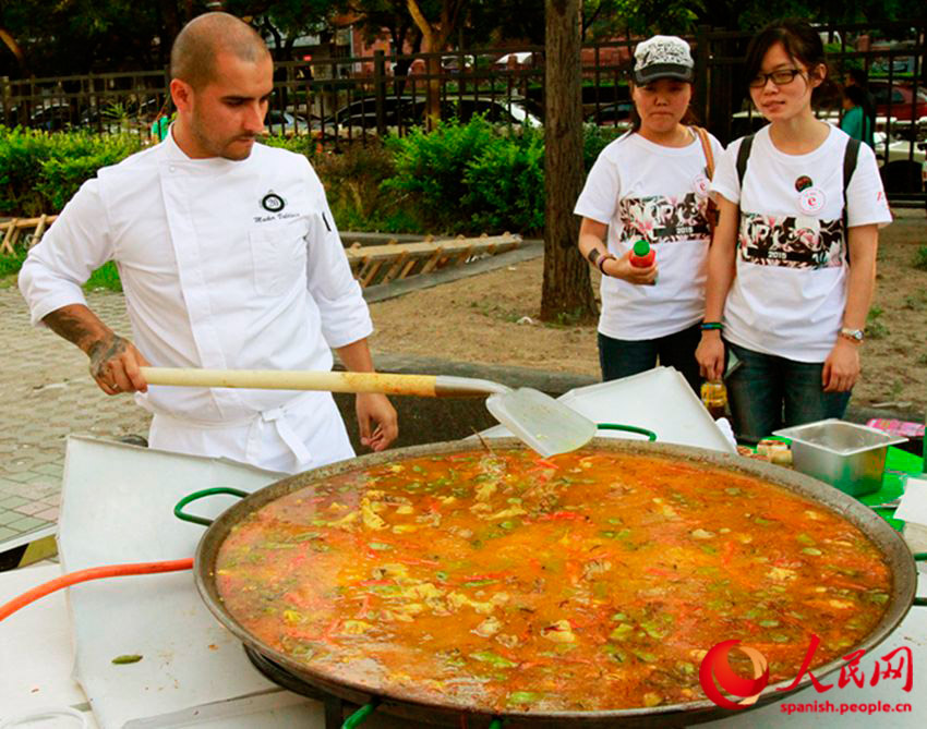 En esta ocasión, el chef espa?ol Maykel Valdivia cocinó una Paella gigante que ofreció a los participantes.