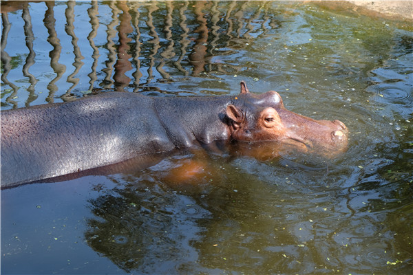 Un hipopótamo del Parque Zoológico Tropical y Jardín Botánico de Hainan, el 9 de junio de 2015. [Foto por Huang Yiming/China Daily] |