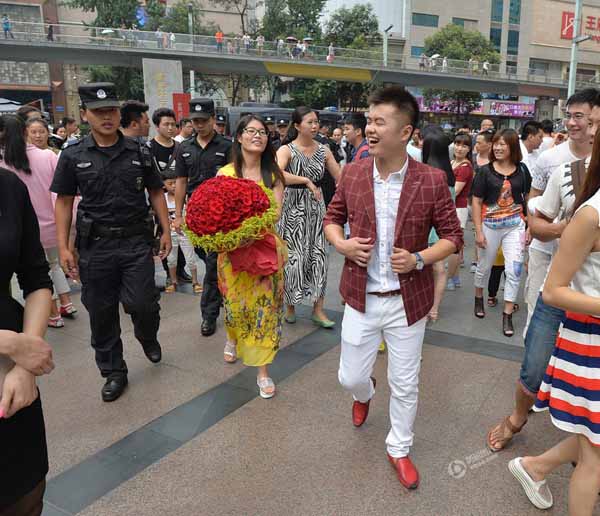 Chengdu, 01/07/2015(El Pueblo en Línea)-Un hombre que planeó pedirle matrimonio a su novia en una calle muy transitada de Chengdu, provincia de Sichuan, fue arrestado por la policía momentos después de que la joven dijera que sí, según informó el diario Huaxi Metropolitan el lunes.