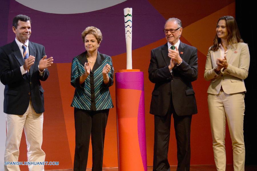 BRASILIA, 3 jul (Xinhua) -- La presidenta de Brasil, Dilma Rousseff, presentó hoy la antorcha olímpica Rio 2016 y el itinerario que recorrerá por todo el país hasta ser encendida en el estadio Maracaná en la ceremonia de inauguración de los juegos.