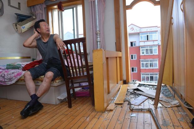 Shenyang, 09/07/2015(El Pueblo en Línea)-Una mujer quedó en estado de shock cuando a su balcón comenzaron a salirle grietas y de repente se desplomó en la calle mientras ella estaba en la cocina picando carne, en Shenyang, provincia de Liaoning, según informó el diario Huashang el martes.