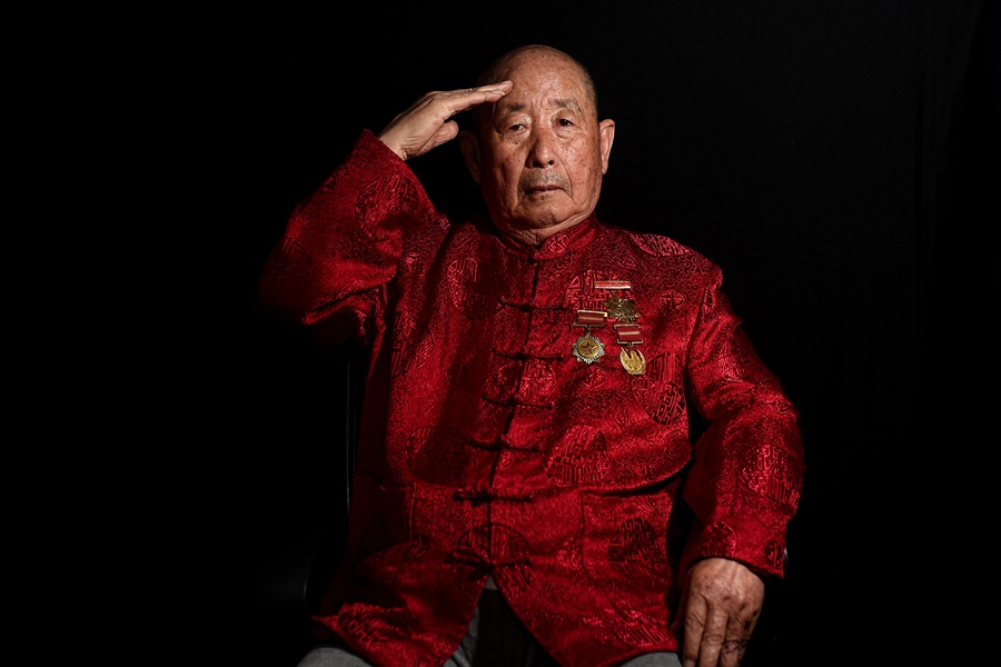 Zhang Shuchen saluda a la patria con motivo del 70 aniversario de la victoria de resistencia de la guerra del pueblo chino contra la agresión japonesa. Chengde, provincia de Hebei. (Foto: Xinhua)