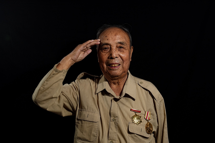 Li Zhenqi saluda a la patria con motivo del 70 aniversario de la victoria de resistencia de la guerra del pueblo chino contra la agresión japonesa. Chengde, provincia de Hebei. (Foto: Xinhua)