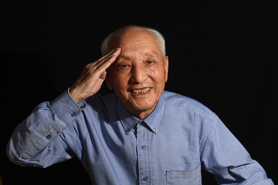 Li Ge, de 96 a?os, desde 1937 luchó para la liberación de China. Li Ge saluda a la patria con motivo del 70 aniversario de la victoria de resistencia de la guerra del pueblo chino contra la agresión japonesa. Chengde, provincia de Hebei. (Foto: Xinhua)