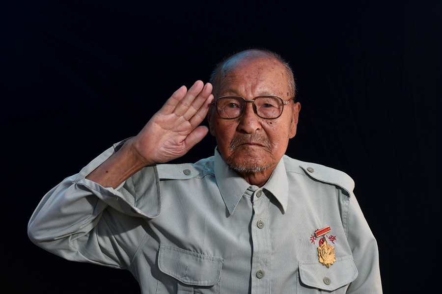 Veteranos que lucharon en la guerra de resistencia contra Japón saludan a la patria