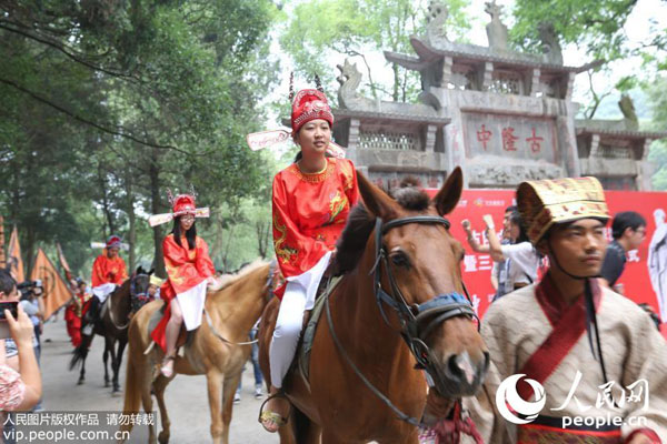 Wuhan, 11/07/2015(El Pueblo en Línea)-El jueves se pudo ver una fila de estudiantes montando a caballo con trajes tradicionales chinos en un parque de Xiangyang, provincia de Hubei. Resultaron ser estudiantes sobresalientes del ”gaokao”, según la web qq.com.