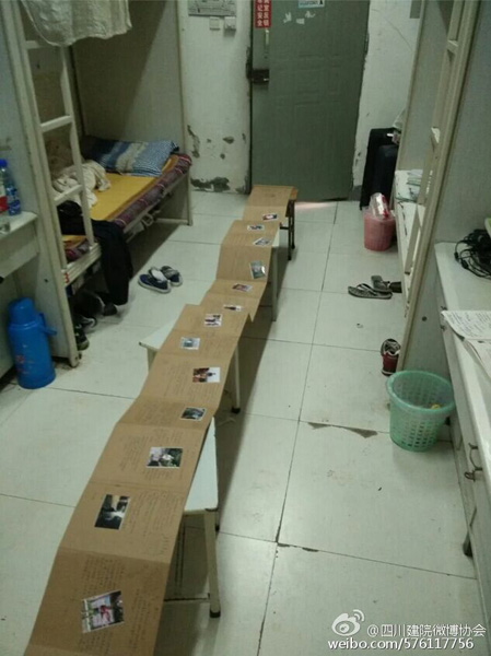 En la foto se ve que la “carta de amor con docenas de miles de caracteres chinos” ocupa todo el dormitorio de estudiantes masculinos. Con una longitud de cerca de 5 metros, en la carta las letras se mezclan con diversos dibujos y fotos, por lo que muchos internautas expresan sus opiniones: “la chica es tan adorable que casi puede satisfacer todo lo que necesita un hombre” o “es muy artística la chica”.