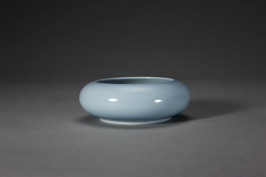 Recipiente para agua esmaltado en azul cielo. Debido a su color y textura esta pieza es altamente valorada por los expertos. Es la primera vez que se expone al público.[Foto: Museo Capitalino]