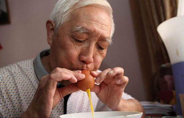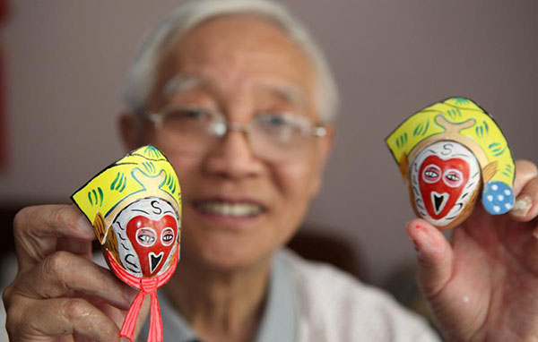 Fei Yongquan, fan de la opera de Pekín, comenzó a aprender pintura sobre cáscara de huevo en 2005, después de jubilarse como profesor.