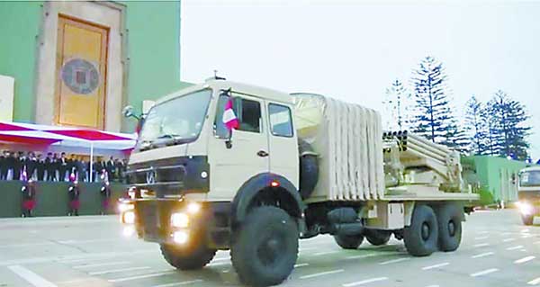 Lima, 23/07/2015(El Pueblo en Línea)-Los lanzadores de misiles tipo 90 milti-barril de122mm formarán parte del armamento en en el próximo desfile del Día Nacional de Perú el 29 de julio. Se trata de la primera vez que Perú importa armas de China, según informó Global Times el miércoles.