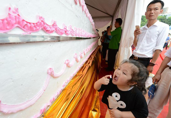 Changsha, 27/07/2015(El Pueblo en Línea)-Los fanáticos de los dulces en Changsha pudieron disfrutar de una tarta de 4,5 toneladas, que rompió un récord Guinness por su descomunal tama?o.