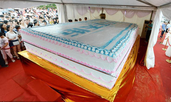 Changsha, 27/07/2015(El Pueblo en Línea)-Los fanáticos de los dulces en Changsha pudieron disfrutar de una tarta de 4,5 toneladas, que rompió un récord Guinness por su descomunal tama?o.