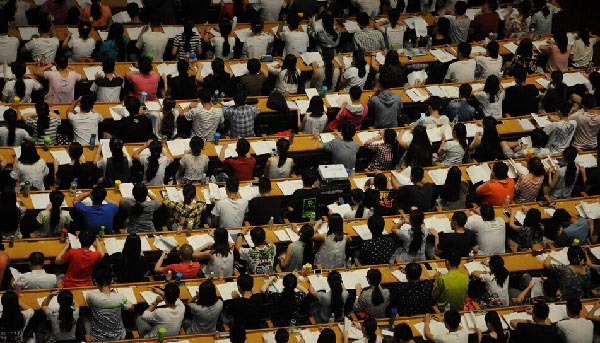 Jinan, 03/08/2015(El Pueblo en Línea)-Más de 3.000 estudiantes han realizado los cursos previos a los exámenes de admisión a un postgrado en un gran salón en Jinan, provincia de Shandong, el miércoles. Para estos candidatos, la mayoría titulados universitarios, las vacaciones de verano son un momento importante para prepararse para los exámenes que tendrán lugar en enero. Una pantalla de 50 metros cuadrados muestra las notas de los profesores.