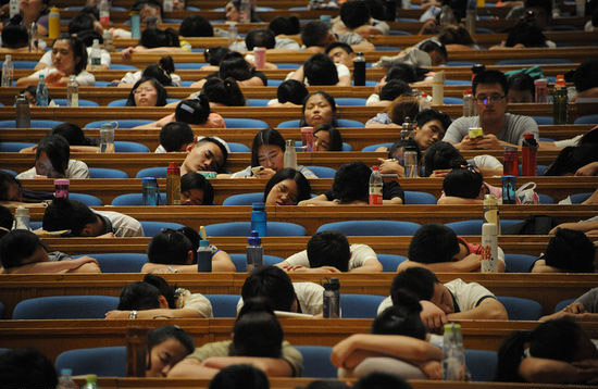 Jinan, 03/08/2015(El Pueblo en Línea)-Más de 3.000 estudiantes han realizado los cursos previos a los exámenes de admisión a un postgrado en un gran salón en Jinan, provincia de Shandong, el miércoles. Para estos candidatos, la mayoría titulados universitarios, las vacaciones de verano son un momento importante para prepararse para los exámenes que tendrán lugar en enero. Una pantalla de 50 metros cuadrados muestra las notas de los profesores.