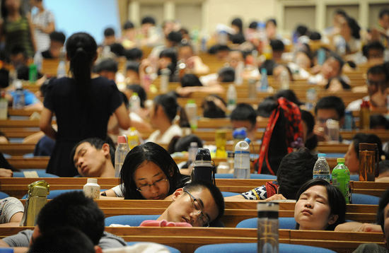 Jinan, 03/08/2015(El Pueblo en Línea)-Más de 3.000 estudiantes han realizado los cursos previos a los exámenes de admisión a un postgrado en un gran salón en Jinan, provincia de Shandong, el miércoles. Para estos candidatos, la mayoría titulados universitarios, las vacaciones de verano son un momento importante para prepararse para los exámenes que tendrán lugar en enero. Una pantalla de 50 metros cuadrados muestra las notas de los profesores.