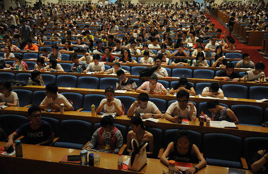 Jinan, 03/08/2015(El Pueblo en Línea)-Más de 3.000 estudiantes han realizado los cursos previos a los exámenes de admisión a un postgrado en un gran salón en Jinan, provincia de Shandong, el miércoles. Para estos candidatos, la mayoría titulados universitarios, las vacaciones de verano son un momento importante para prepararse para los exámenes que tendrán lugar en enero. Una pantalla de 50 metros cuadrados muestra las notas de los profesores.