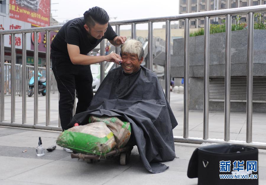 Pekín, 05/08/2015(El Pueblo en Línea)- El día 4 de agosto, en la plaza este de la estación de trenes de Zhengzhou, el peluquero Hong Tao cortó el pelo a un vagabundo. Desde el 21 de julio, este peluquero empezó a cortar el pelo gratis a los vagabundos cada martes. De esta manera, quiere concienciar a la gente para que atienda las necesidades de los vagabundos que viven en las calles. Según Hong Tao, también planea a cortar el pelo gratis a los trabajadores inmigrantes para que se sientan el cari?o social.