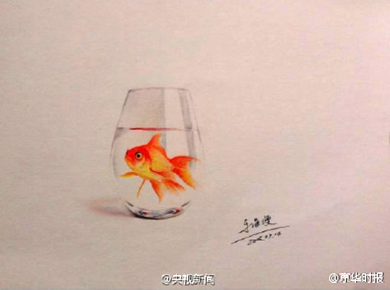 Nanchang, 06/08/2015(El Pueblo en Línea)-Xiaoman, estudiante de la Universidad de Xiushui de Jiangxi, se ha hecho muy popular en las redes sociales con sus impresionantes dibujos de peces pintados con lápices de colores. El joven ha estado dibujando animales por lápices de colores desde este mes de mayo. Como las carpas son un símbolo de buena suerte, Xiaoman desea compartir la buena suerte con más personas.