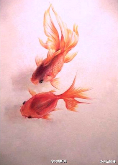 Nanchang, 06/08/2015(El Pueblo en Línea)-Xiaoman, estudiante de la Universidad de Xiushui de Jiangxi, se ha hecho muy popular en las redes sociales con sus impresionantes dibujos de peces pintados con lápices de colores. El joven ha estado dibujando animales por lápices de colores desde este mes de mayo. Como las carpas son un símbolo de buena suerte, Xiaoman desea compartir la buena suerte con más personas.