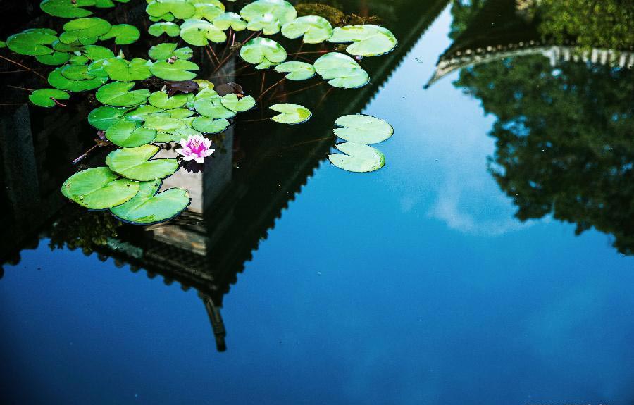 Yunnan,10/08/2015(El Pueblo en Línea)-Foto del 8 de agosto de 2015 muestra un edificio reflejado en el agua en la aldea de Tuanshan, prefectura autónoma Hani-Yi de Honghe, provincia de Yunnan. El pueblo Tuanshan es conocido por su arquitectura antigua bien conservada.