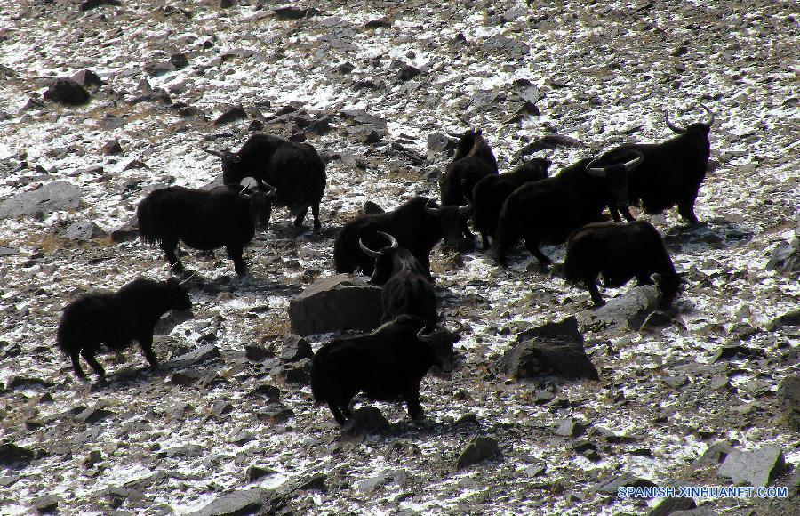 La foto tomada el 11 de agosto de 2015 muestra un grupo de yak en una reserva natural en el Tibet. El Tibet, que es una de las áreas con la mejor calidad ambiental en el mundo, ha evitado el desarrollo económico al precio de los recursos naturales. La mayor parte de la región mantiene sus estados naturales originales.