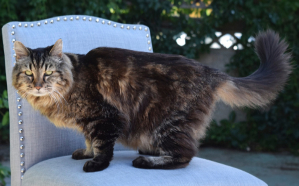 El gato pertenece a una familia en la ciudad de Sisters, Oregón. Su due?a, Ashley Reed Okura, lo tiene desde que era gatito y ella tenía siete a?os.