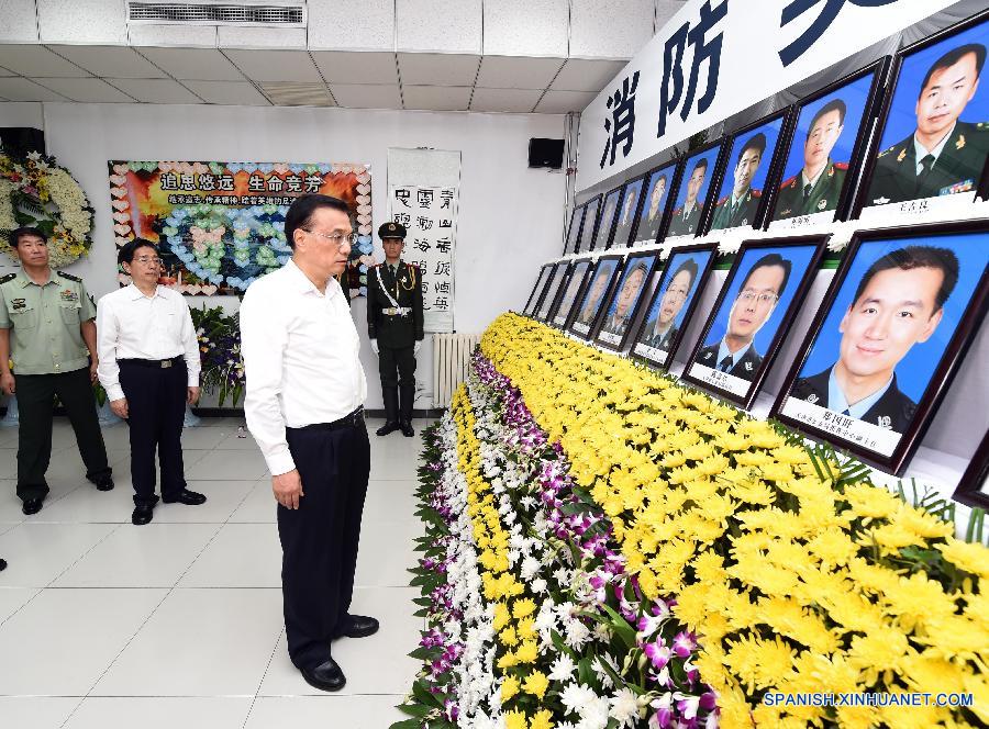 Primer ministro chino rinde homenaje a bomberos muertos en explosiones de Tianjin