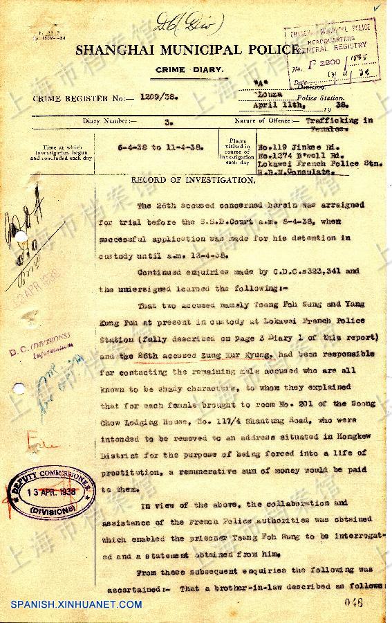 BEIJING, 19 ago (Xinhua) -- Una serie de documentos históricos publicados el martes mostró que personas al servicio del ejército japonés en la metrópoli oriental china de Shanghai secuestraron y vendieron a mujeres chinas para que fueran esclavas sexuales durante la Segunda Guerra Mundial.